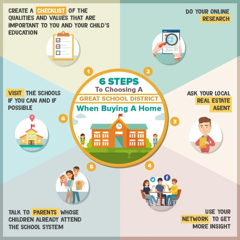 As you do your house-hunting, it's important to also have an analysis of the schools and school districts you’re considering. Here are some things you can do to help you choose an excellent school district wisely: