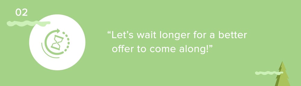 After receiving an offer from the first showing, sellers may be hesitant to accept it, wondering if other potential buyers would be keen to cough up more money for their beloved home. This is another common assumption among many sellers: if they're willing to wait long enough, a better offer will come. The thoughts of potential bidding wars could prompt them to be in a “no rush mode” when it comes to selling their home.