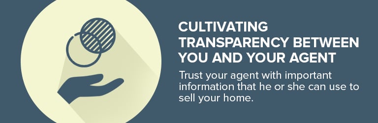 When communicating with your agent, transparency is key. Once you sign an agreement with your agent, he or she has the legal obligation to represent only your interests in all negotiations, so it's very important that you disclose every detail.